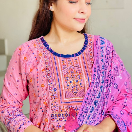 Stitched Three Piece Code T-3016 স্লাব কটন থ্রিপিস । গলার ডিজাইন ও পুরো বডিতে স্ক্রিনপ্রিন্টের কাজ করা। প্রতিটি থ্রিপিস সুন্দর ডিজাইনের এবং বানানো কামিজঃ সাইজ ঃ ৩৮,৪০=XL এবং ৪২,৪৪= XXL লং ৪৫ ইঞ্চি