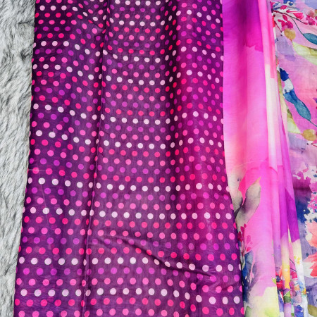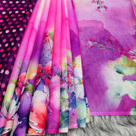 সেমি অর্গাঞ্জা ফেব্রিকের ১৪ হাত জারুল শাড়ি, সঙ্গে ম্যাচিং পলকা ডট ব্লাউজ পিস।